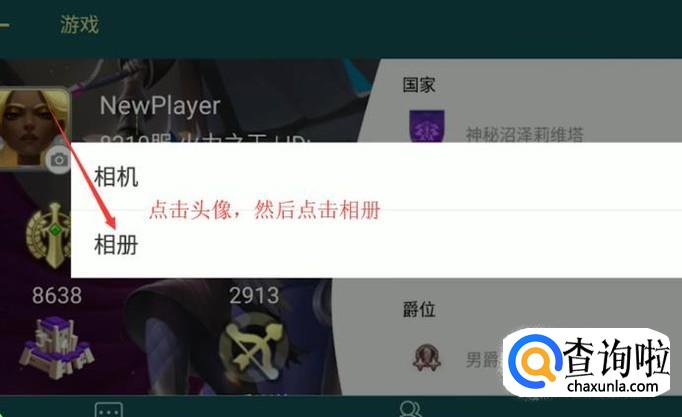然后点击头像,在弹出的选择界面中点击相册,如下图所示