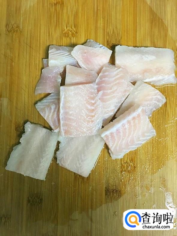 龙里鱼柳室温解冻,冲洗干净后切成厚片。