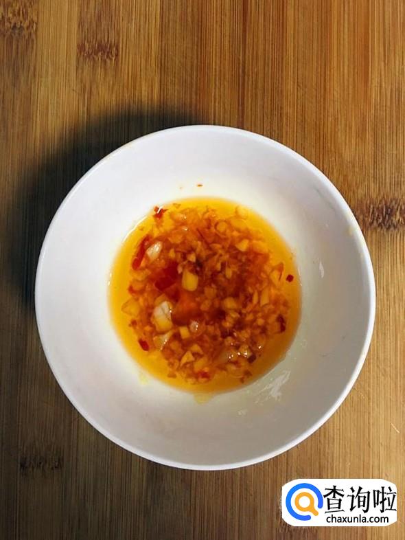 蒜瓣剁碎,放入碗中,加入小勺食用油,微波炉高火30秒后取出,趁热依次加入1小勺蚝油和盐,搅拌均匀,做成蒜蓉汁。