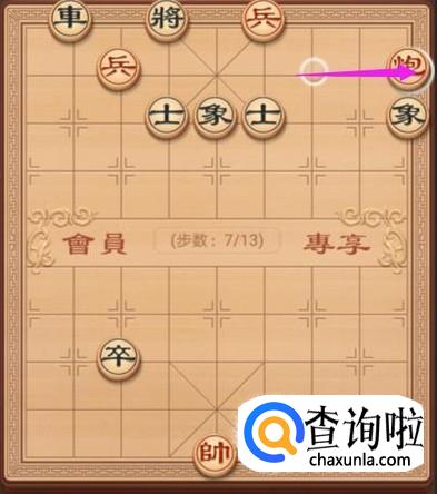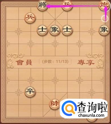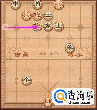 红方这里接着来走它的第三手,红方炮右走3步,如图所示。