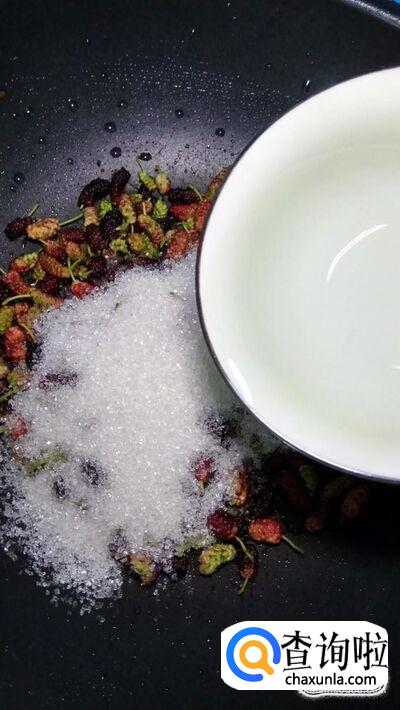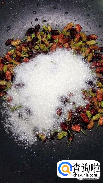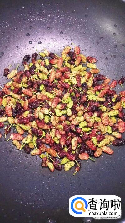 洗净之后,将桑葚倒入炒锅中。也可以用料理机将桑葚打碎之后倒入锅中,不过桑葚煮时间久了,也会变成酱,我这里就直接熬酱了。