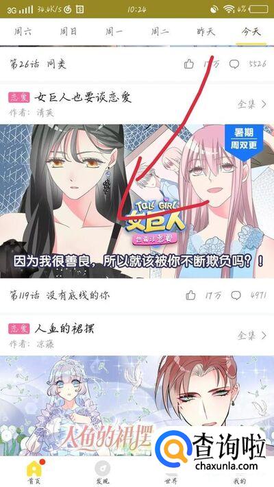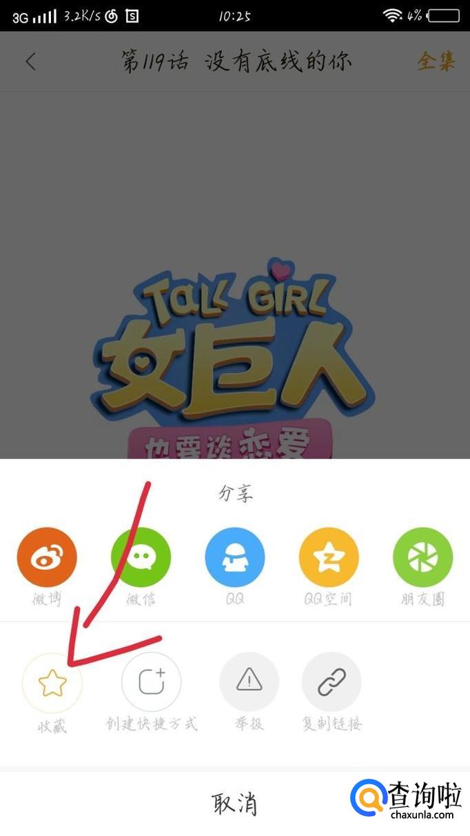 点击“收藏”选项,如图1箭头所示。这样这个漫画这一章就收藏了。你可以在我的收藏里看到。
