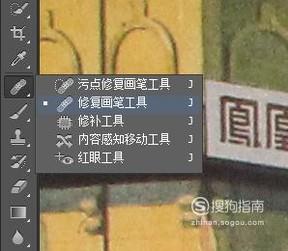 要修改东西的话,像修复画笔,就是比较好的工具,我们可以在左侧菜单这里选择我们需要的一些工具来进行使用。