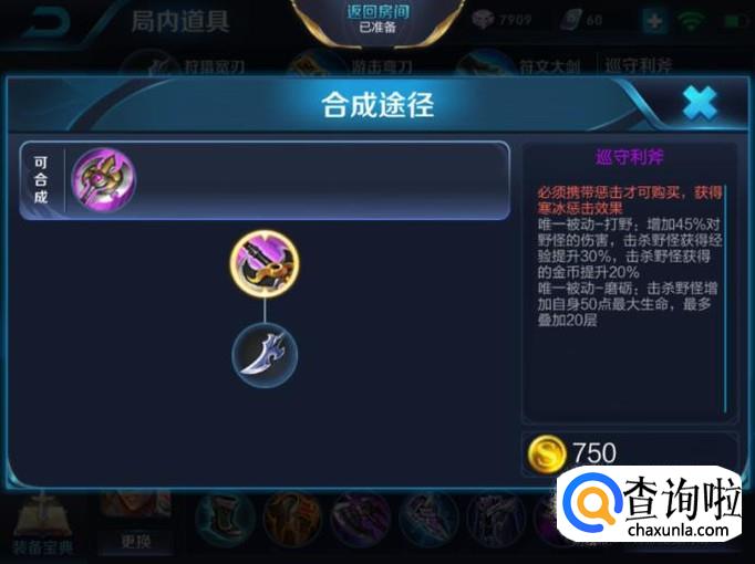 达摩打野第一件装备建议出巡守利斧,这样可以提高达摩的打野效率。