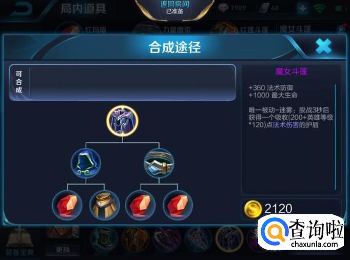 达摩打野最后一件装备建议出魔女斗篷,这样在游戏后期有效的抵抗敌方的法师类英雄的伤害。
