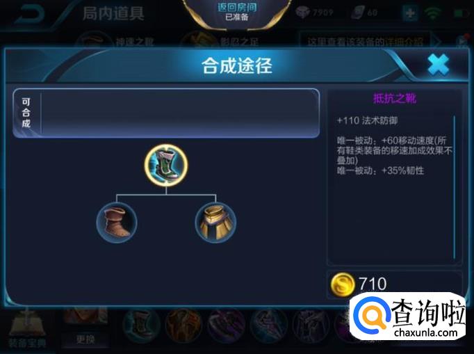 达摩打野第二件装备建议出抵抗之靴,这样不但可以提高达摩的移动速度,同时可以增加法术防御能力。