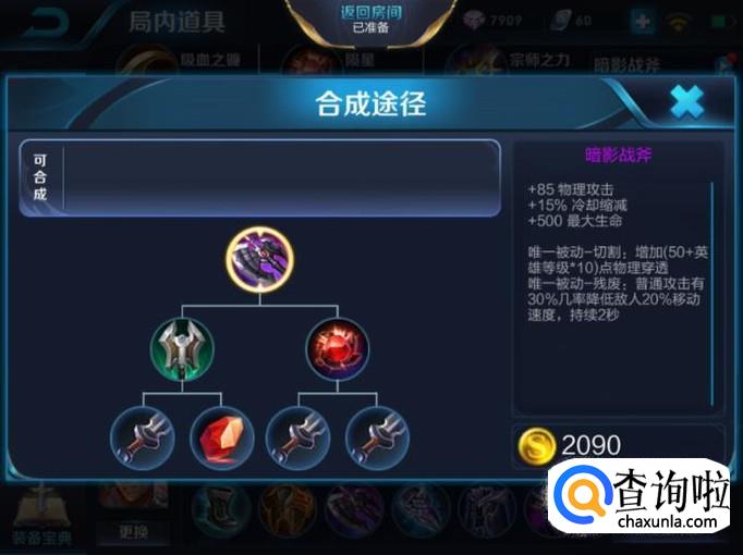 达摩打野第三件装备建议出暗影战斧,这样可以提高达摩的物理穿透能力以及物理攻击能力。
