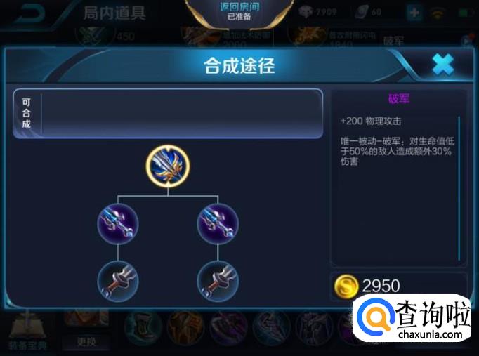 达摩打野第五件装备建议出破军,破军是游戏中增加物理攻击能力最大的一件装备,这对达摩后期的伤害输出有非常显著的提高。