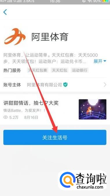 进入之后,点击“关注生活号”,进入下一页面,如图所示。