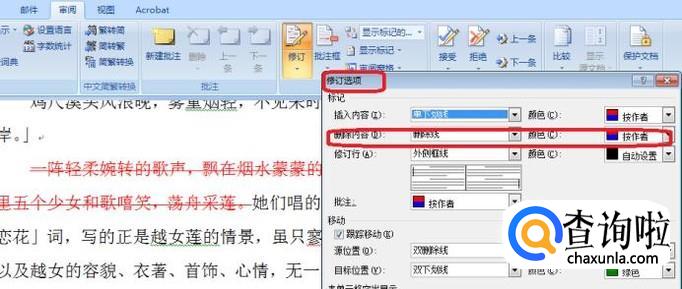 如果要直接在文章里面加以修改,点击“修订”,所有的修改内容都会有记录。如下图所示,选中需要修改的内容,按“Delete”键,就会出现红色的删除线,当然删除线的颜色可以根据自己需要,在“修订选项”中修改。