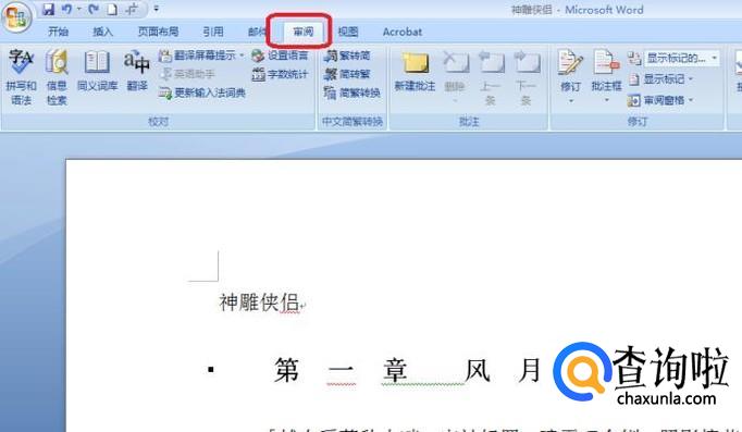 打开任意一篇文章做示例,然后点击标题栏的“审阅”。