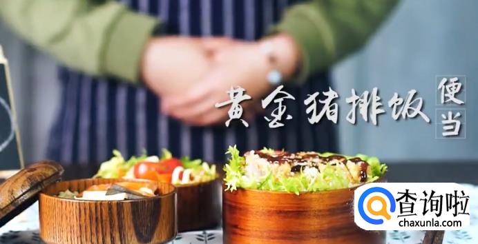 根据个人喜好,配上海鲜汤、蔬菜沙拉和米饭等,装入便当盒,黄金猪排饭便当就做好了。