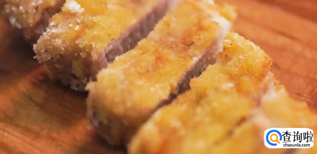 热锅起油,油热后,放入猪里脊肉炸制,期间需要复炸一次;炸至两面金黄即可,捞出切块,黄金猪排就做好了。