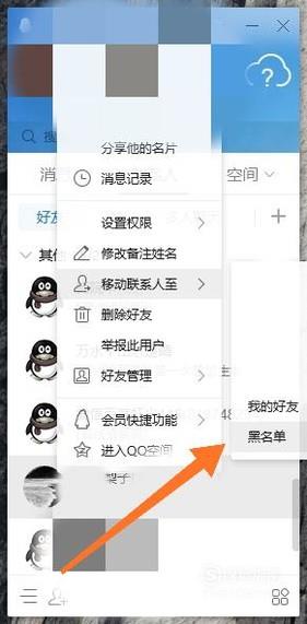 选中后单击鼠标右键,选择“移动联系人至黑名单”。