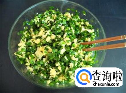 鸡蛋碎里面加点葱花,然后食盐,再加上一点点味素就可以了,然后把韭菜倒进去搅拌均匀,鸡蛋韭菜馅就做好了,喜欢吃虾皮的,放一把虾皮更好吃。