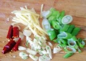 准备配料,刚大蒜扒皮切碎,老姜切片,葱切段,辣椒切段备用。
