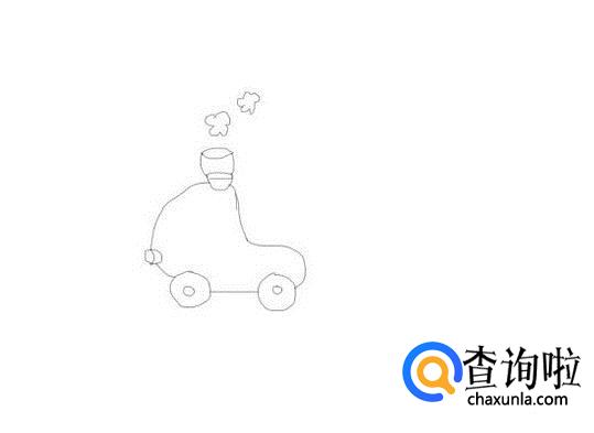 先画出火车的车头 ,然后再在车头上画出烟囱,并再在火车头上画出驾驶室,再在火车头的下面再画出火车的轮子,如图所示: