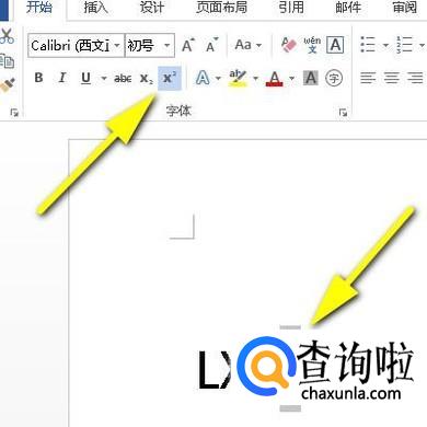 接着,鼠标点开“开始”选项卡,在下面的“字体”组里,点击如下图箭头所指的按钮,把R向上提。
