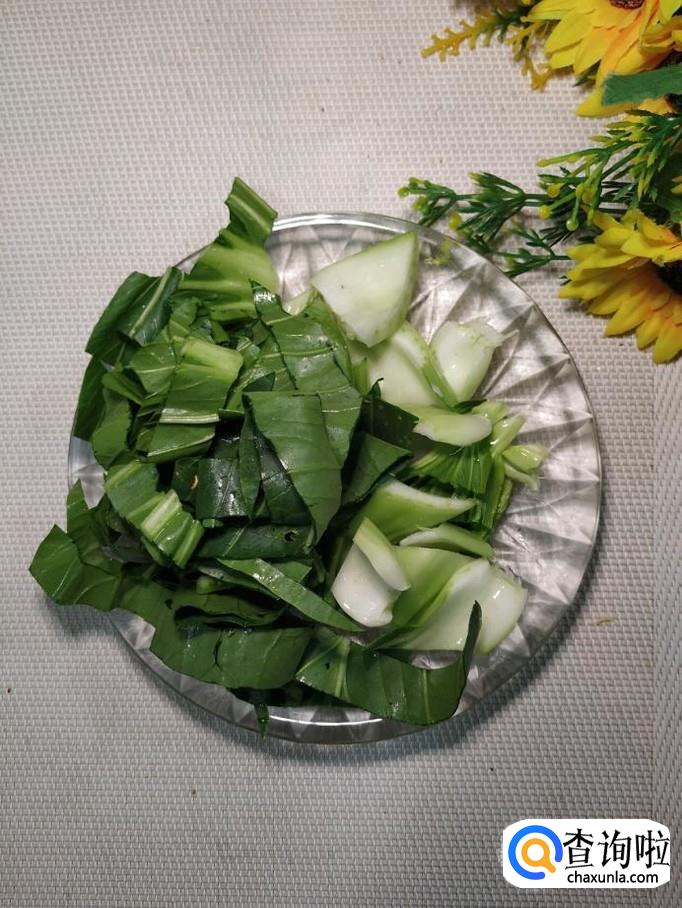 准备适量油菜,洗净,特别要将根部的泥沙洗净,切成块儿备用;再准备适量枸杞子,用清水泡开。