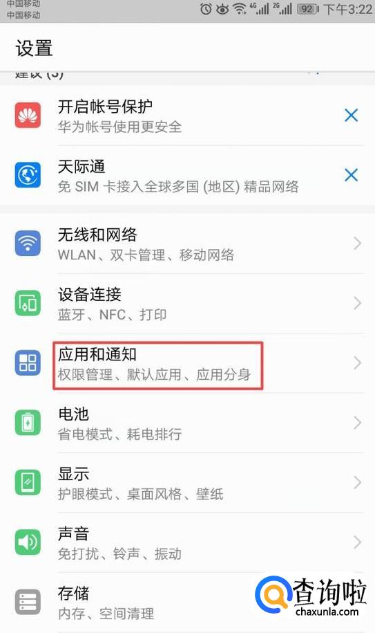弹出的界面,我们点击应用和通知;