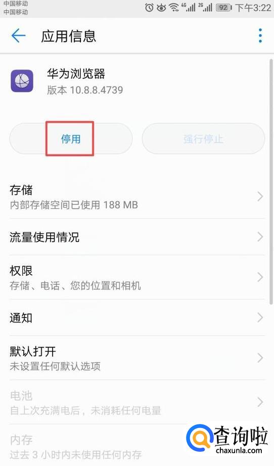 弹出的界面,我们点击停用就可以了,我们根据我们的需求停用一些手机自带的软件就可以了。
