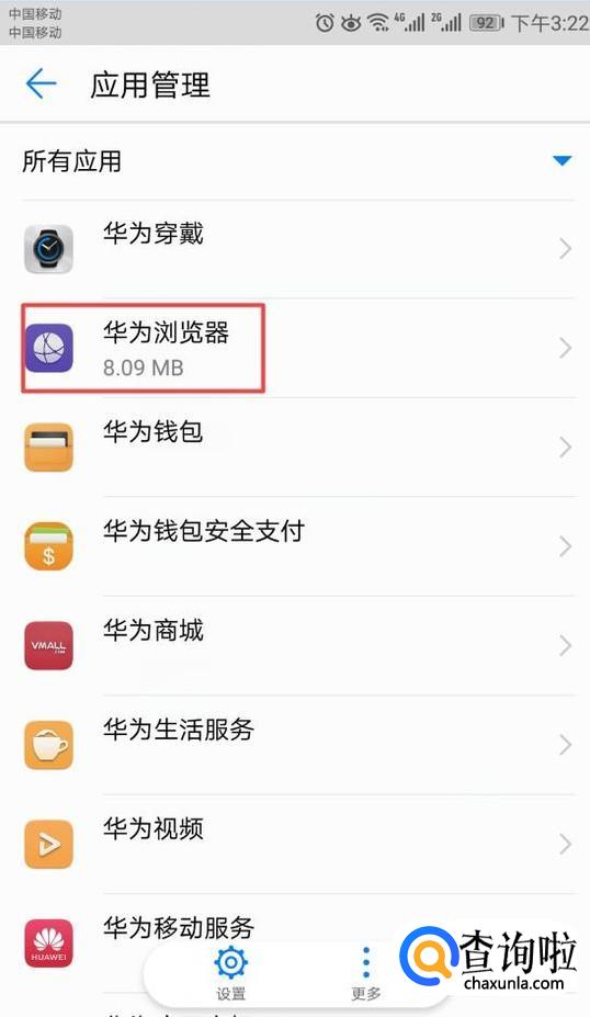 之后我们找到手机自带的软件,此处我们可以看到很多,我们点击华为浏览器;
