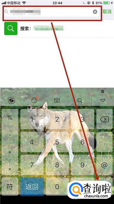 接着输入对方的手机号码并点击搜索,如下图所示。