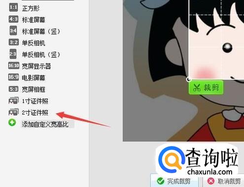点击左下角的二寸证件照,这时候就能对图片进行修改了,裁剪完以后点击完成裁剪,这时候图片就完成了。