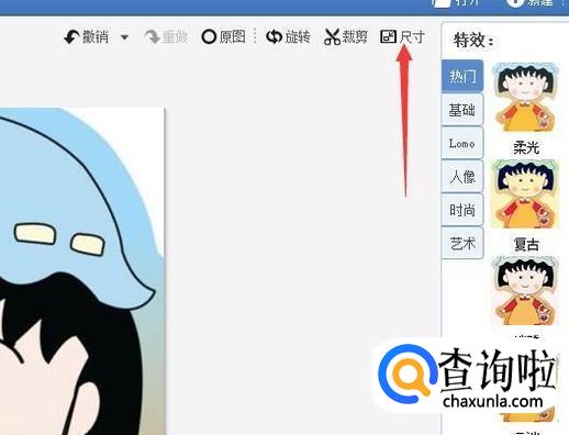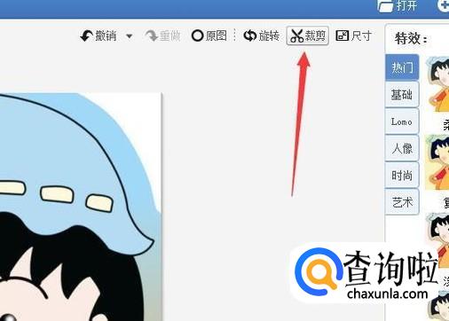 点击裁剪。修改完尺寸以后,可以点击右上角的裁剪,对图片进行修改。
