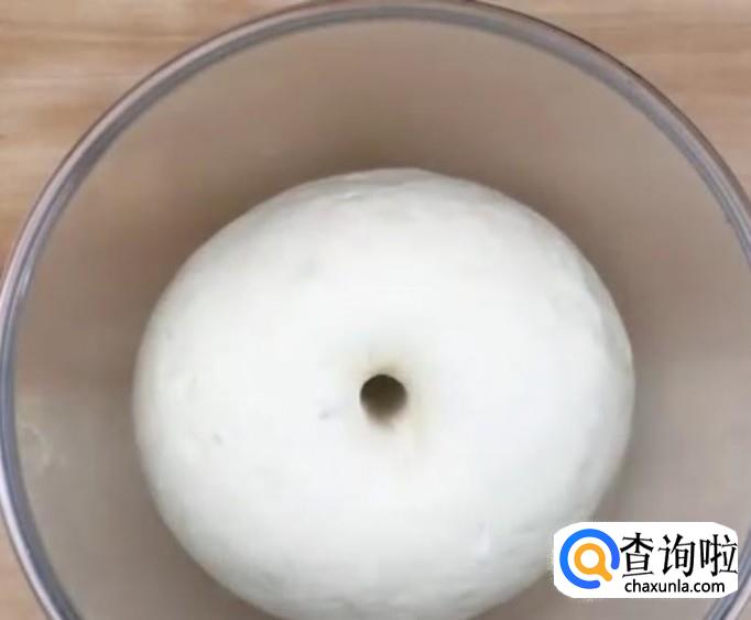 我们将面团放入碗中,盖上保鲜膜,如下图所示,静置在阴凉处发面