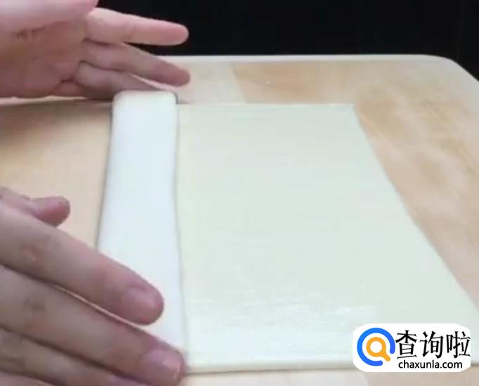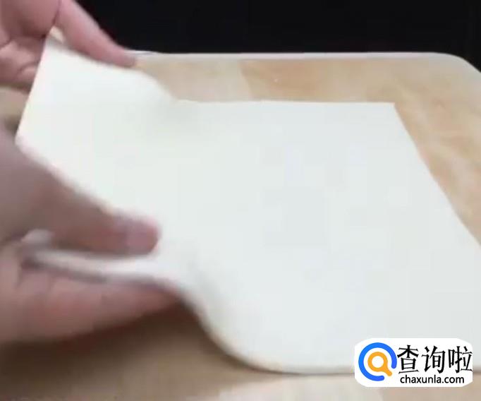 将面团擀成面皮,然后切成正方形或者长方形,如下图所示