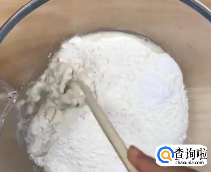 首先,面粉适量,加入少许酵母,适量盐,搅拌均匀