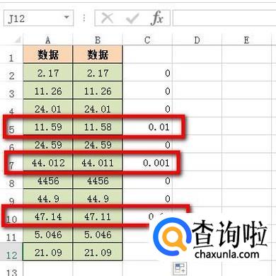 那么,从这些得数中对比出第5行、第7行、第10行的数据不一样。