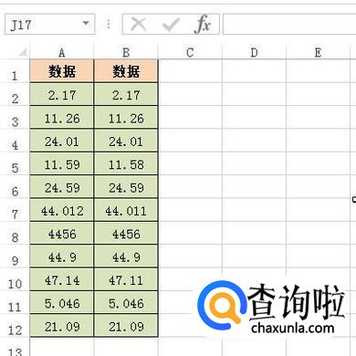 下面举例演示操作方法。例如下图中两列数据,对比这两列数据是否一样。