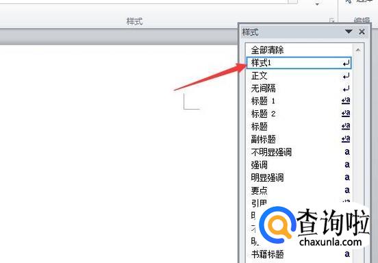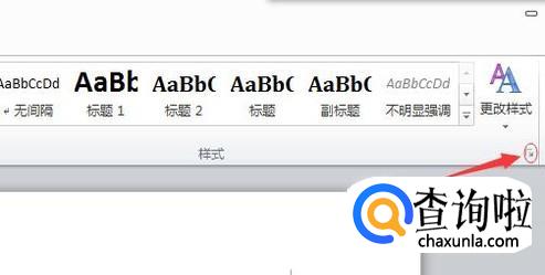打开word 2010,选择“开始”选项卡,单击“样式”选项组中的下方箭头指示的按钮,如图所示。