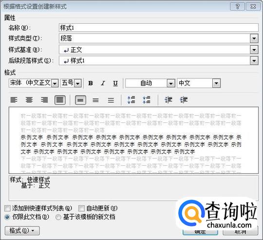 打开新建样式后,就可以设置符合自己要求的格式,然后点击确定即可,然后样式里就会出现新建的样式,如图所示。