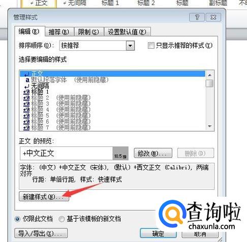 打开【管理样式】对话框,下方出现新建样式选项,单击打开。