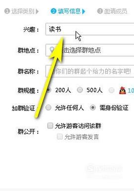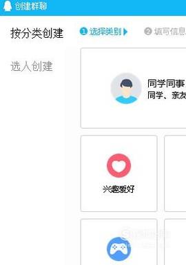 打开创建QQ群的界面,在这里分类,比如,选择,兴趣爱好