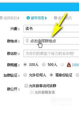 再设置群地址,同样点击编辑框,弹出的地图中选择自己所在的地址。
