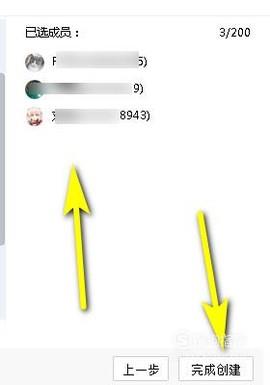 鼠标点击一下好友,好友即出现在右边的成员列表中。然后,点完成创建。