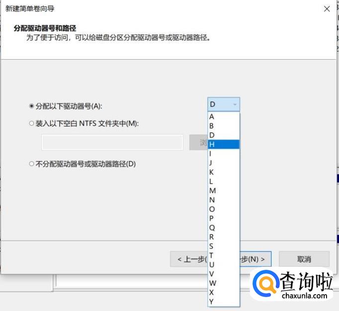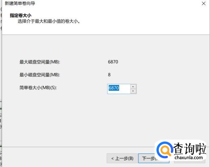 选择你想为新盘分多大空间。然后点击下一步。再选择一个盘符。点击下一步。