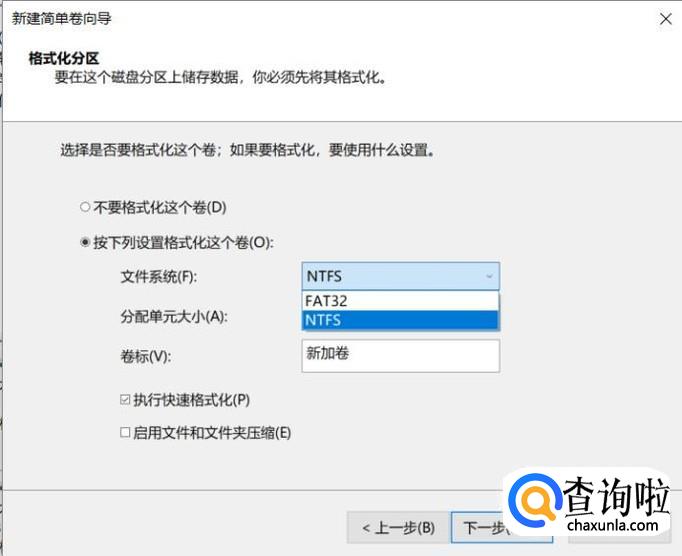 选择格式,一般默认“NTFS”就行。点击下一步。等待一会儿就可以了。希望对你有帮助。