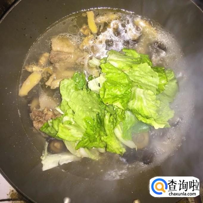 接着把生菜洗净,丢进鸭汤中煮三分钟。