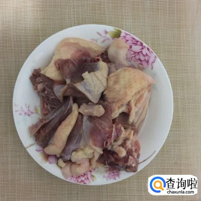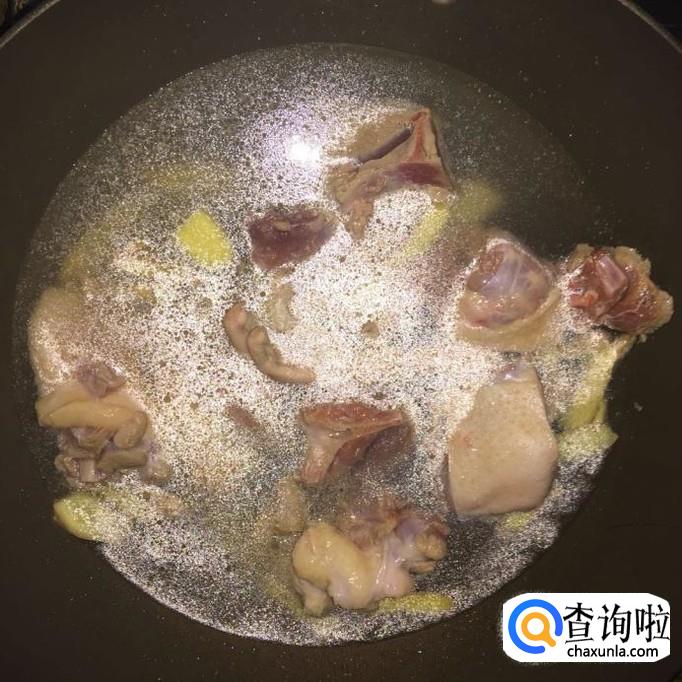 接着把老鸭洗净砍成块,倒入锅中翻炒三分钟。