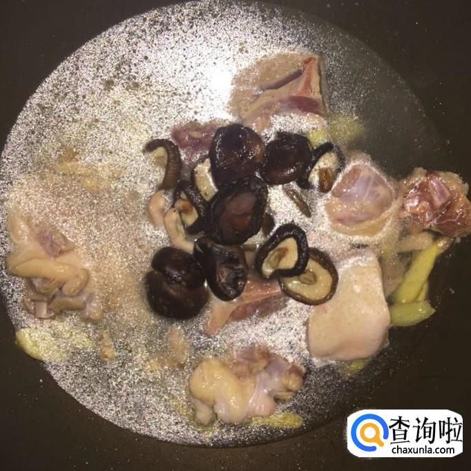 接着把事先泡好的香菇洗净,倒入锅中,大火煮15分钟。