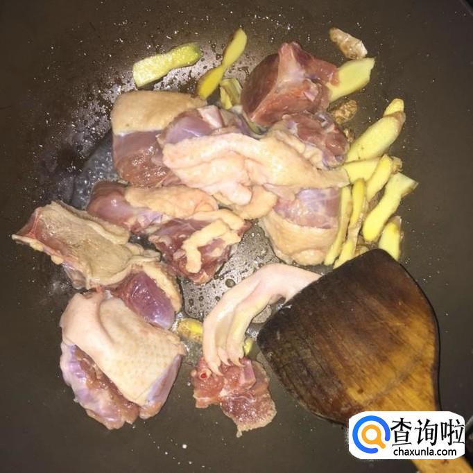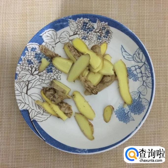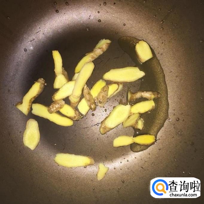 首先将生姜洗净切成片,然后锅中放入适量的食用油,待油冒烟,倒入生姜爆香。