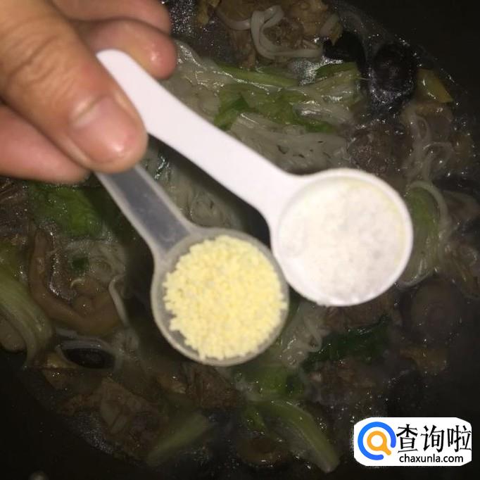 接着往锅中加入一勺的盐巴和一勺的味精,小煮片刻就可以出锅了。