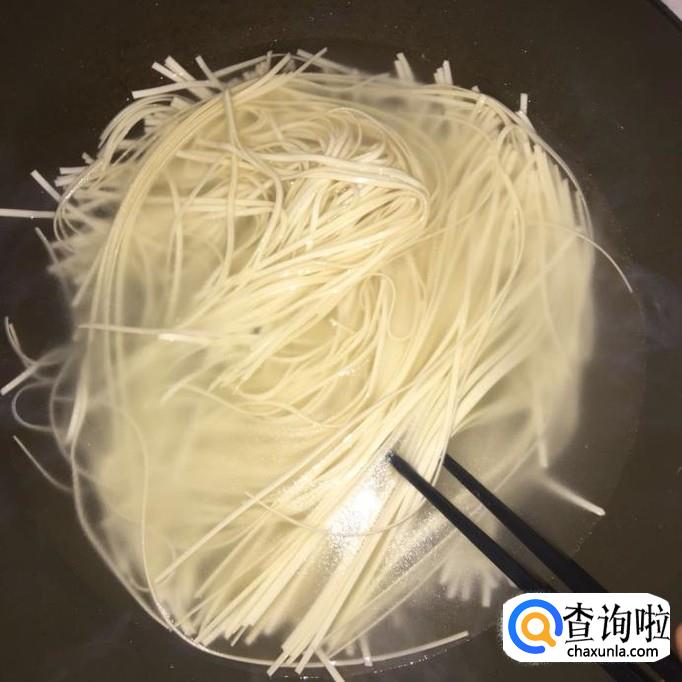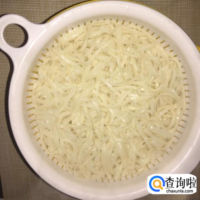 在另一口锅中放入适量的清水,待水烧开,把面条放进去烫五分钟,捞出沥干。