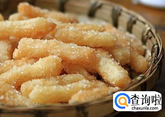 老南京人过七夕还有个独特的风俗:吃江米条。江米条是一道汉族小吃,用糯米面加豆粉和面后在焖锅里蒸出来,放在石臼里用棒子捶,再秆成圆形,晒干用油煎出来,最后蘸梅花﹑松花﹑芝麻等豆沙制作而成的一种食品。