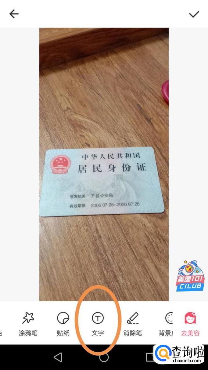 接着,找到需要处理的证件照片,并点击下面【文字】一项,如图所示